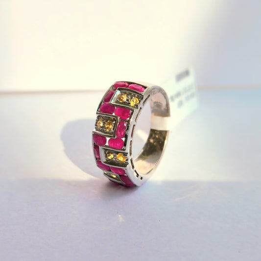 Unique Zig-zag Style Silver Ring With Ruby And Yellow Sapphire