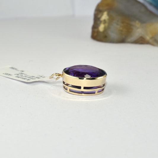 Simple Big Amethyst 9K Yellow Gold Pendant