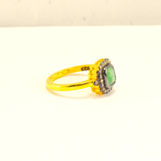 Royal Traditional Design Ring With Emerald And Pave Diamond In 925 Sterling Silver