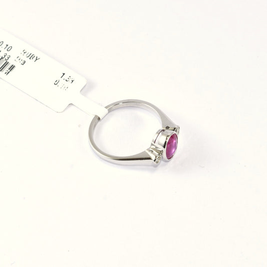 Simple Classic Ruby And Diamond 14K White Gold Ring Totaly Handmade