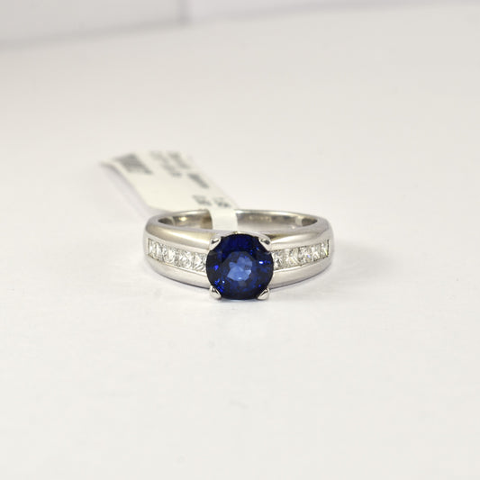Top Qualty Blue Sapphire And Princess Cut Diamond In 925 Sterling Silver Ring