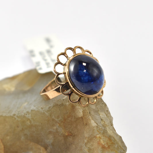 Big Cabution Blue Sapphire 9K Yellow Gold Ring In Floral Theme
