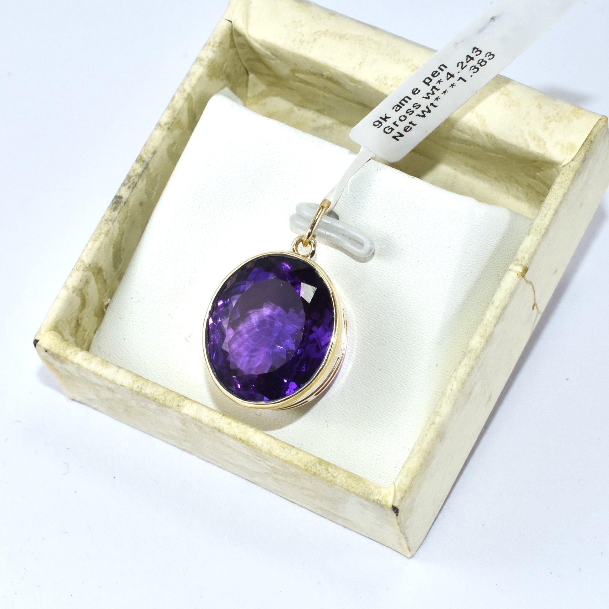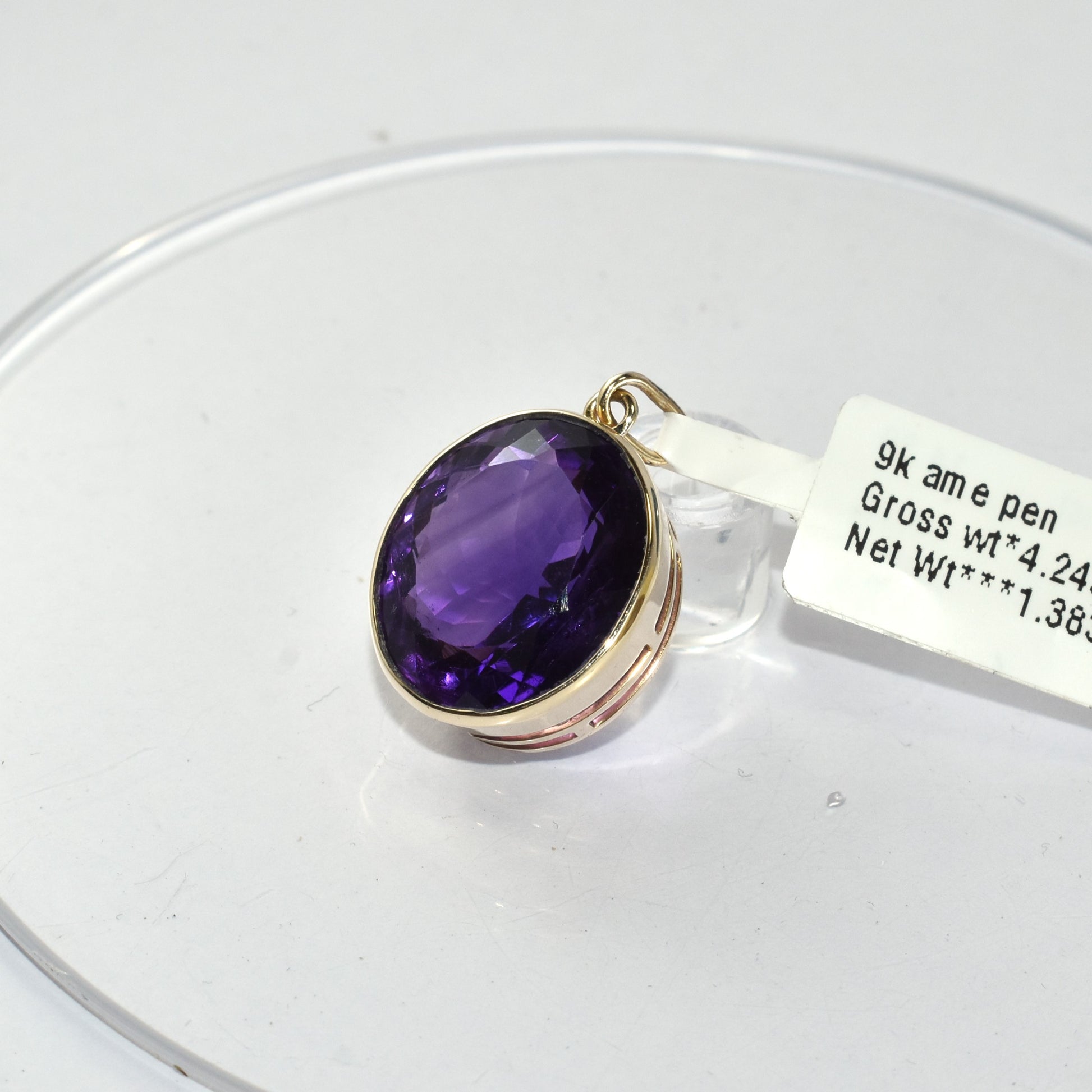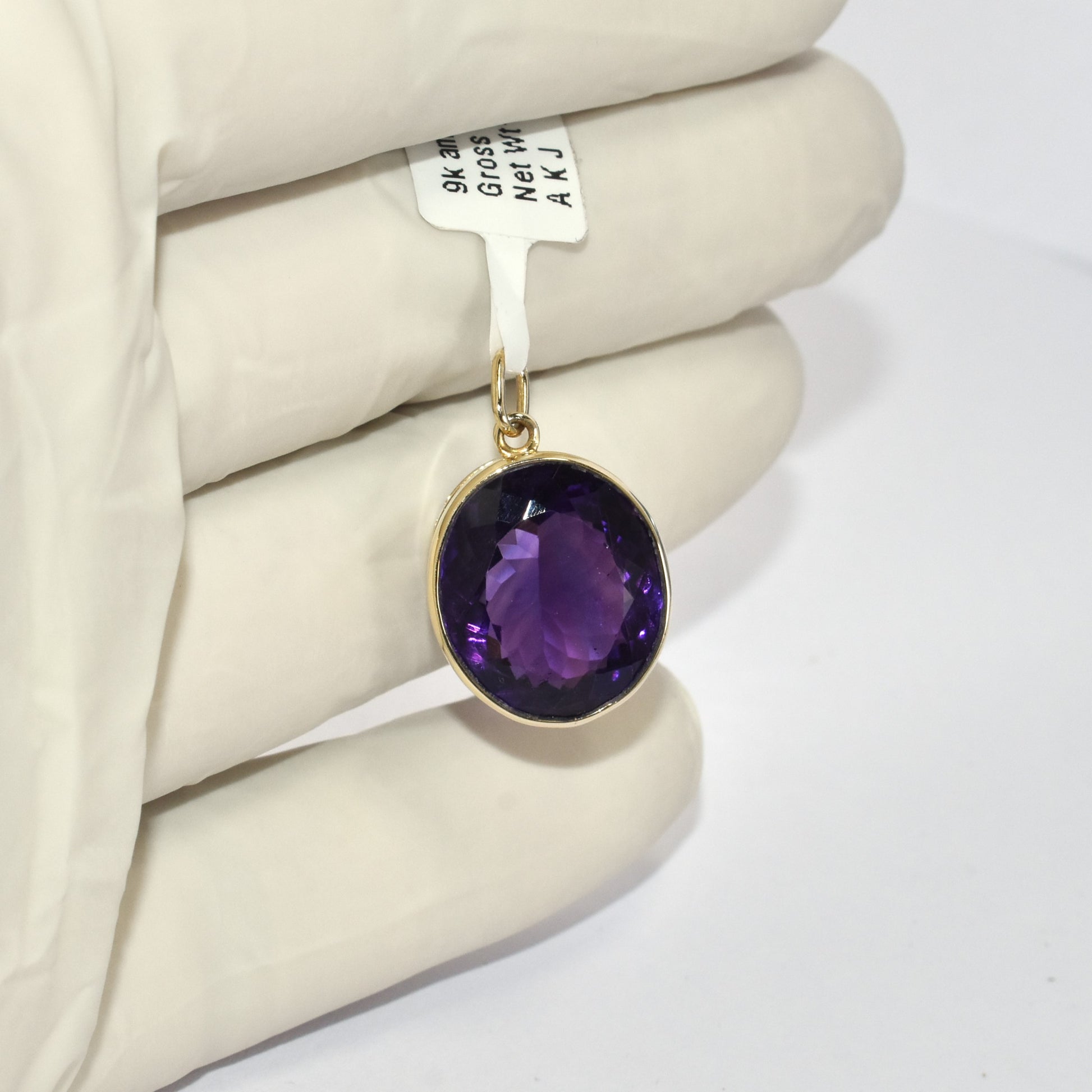 Simple Big Amethyst 9K Yellow Gold Pendant