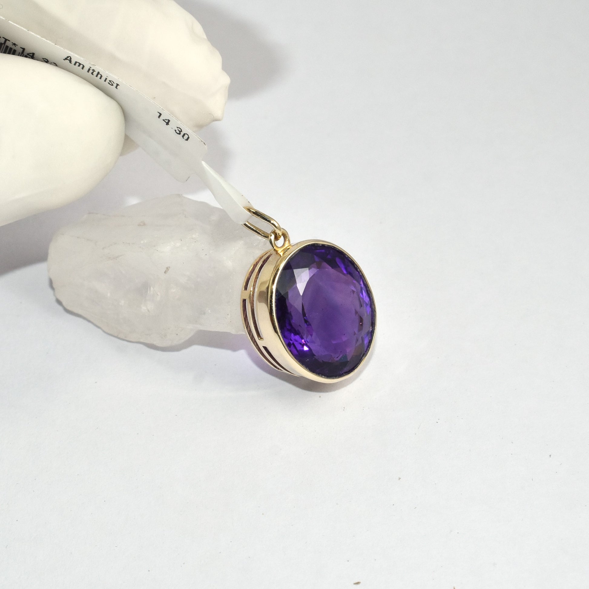 Make a bold yet elegant statement with this Simple Big Amethyst Pendant crafted in lustrous 9K Yellow Gold. Featuring a stunning 14.30 carat natural amethyst, this oval-shaped gemstone dazzles with its rich purple hue and excellent clarity. Designed for those who appreciate minimalist sophistication, this pendant is perfect for both everyday wear and special occasions.