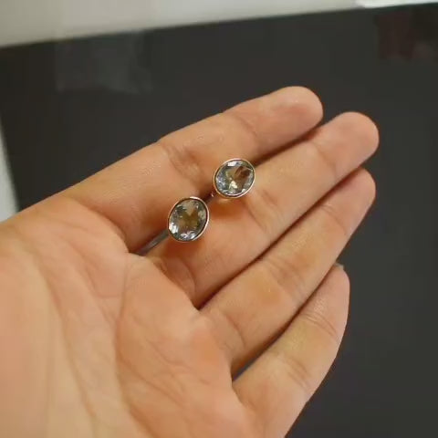 Enhance your everyday look with the serene beauty of natural Aquamarine. These elegant oval stud earrings are handcrafted by Abhner Gems in Jaipur, offering a timeless piece perfect for gifting or a graceful addition to your collection.